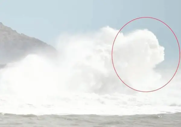 Un volto appare tra le onde che si infrangono sul litorale del Cilento