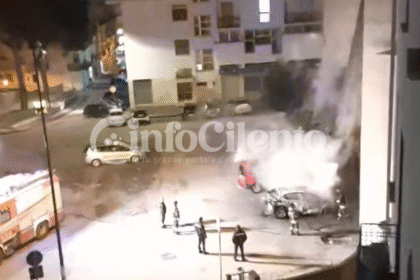 Un’auto è stata avvolta dalle fiamme nello spiazzo retrostante la Chiesa Madre di Santa Maria ad Eboli, dove si svolge il mercatino della frutta.