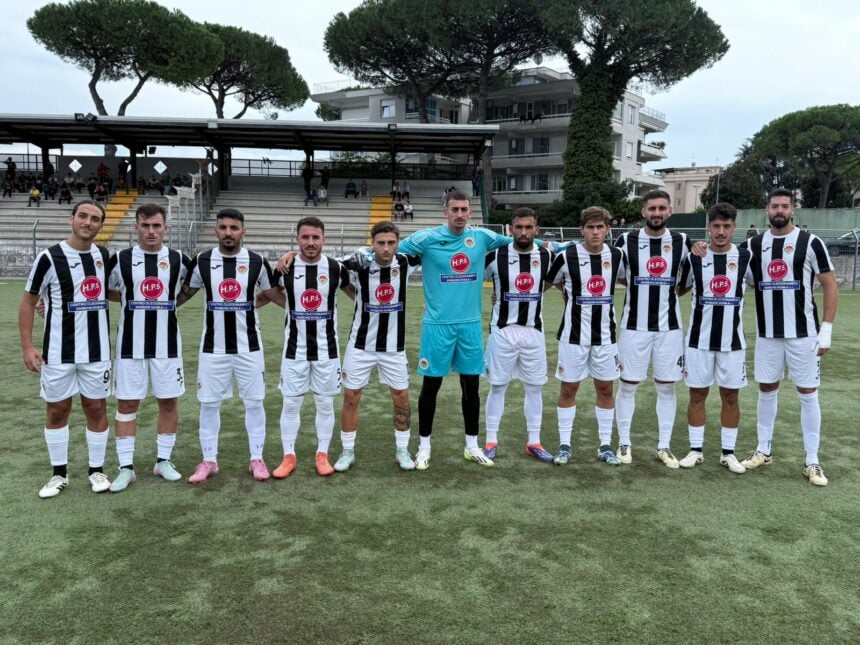 Nonostante l’ampio turn over scelto da mister Fiume, le zebrette offrono una grande prestazione fino all’espulsione di Olmos che ha permesso alla Caivanese di venire fuori e rendersi pericolosa nel finale. La partita è stata sospesa per circa 10’ ad inizio secondo tempo per un malore che ha colpito un tifoso della Battipagliese. Il ragazzo, accompagnato al vicino nosocomio di Frattamaggiore, sembra essersi ripreso. Iniziano forte i bianconeri: al 5’ tiro da fuori di Formicola respinto dal portiere di casa; all’8 conclusione a giro di Spagnuolo che impegna nuovamente Romano; al 9’ occasione ghiottissima capitata sui piedi di Sabatino che da solo in area di rigore spara incredibilmente al lato.