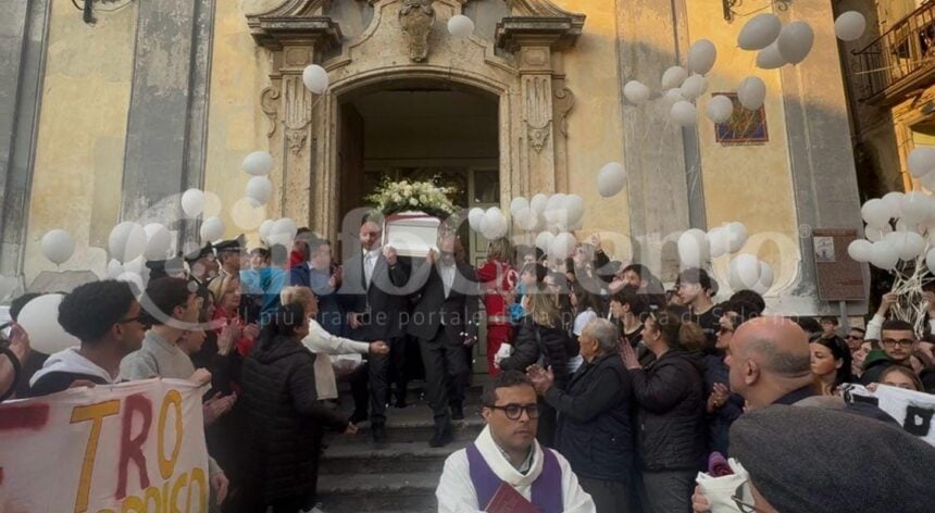 All’uscita dalla chiesa applausi, striscioni e tanti, tanti palloncini bianchi hanno salutato la bara.