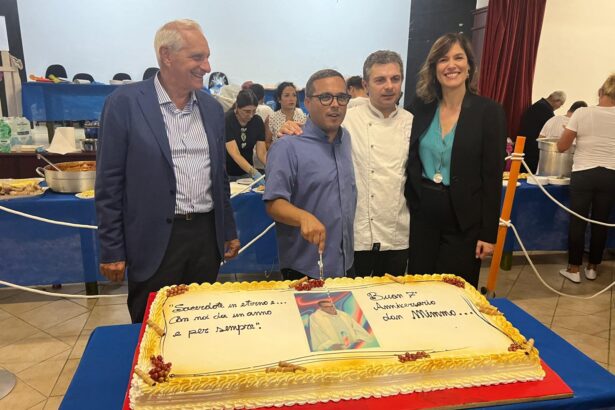 “Sacerdote in eterno e da un anno in mezzo a noi e per sempre” questa la frase riportata sulla grande torta offerta, al termine della festa organizzata per Don Mimmo, alle tantissime persone presenti. A portare i suoi auguri a Don Mimmo anche i rappresentanti dell’amministrazione comunale con il sindaco, Gaetano Paolino. “In questo periodo Don Mimmo ha saputo farsi spazio nei cuori di tutti: con la sua parola gentile, la sua presenza discreta ma costante e il suo sorriso che sa accogliere e confortare. È diventato guida, fratello, amico” hanno fatto sapere dalla comunità parrocchiale della Chiesa di San Pietro Apostolo.