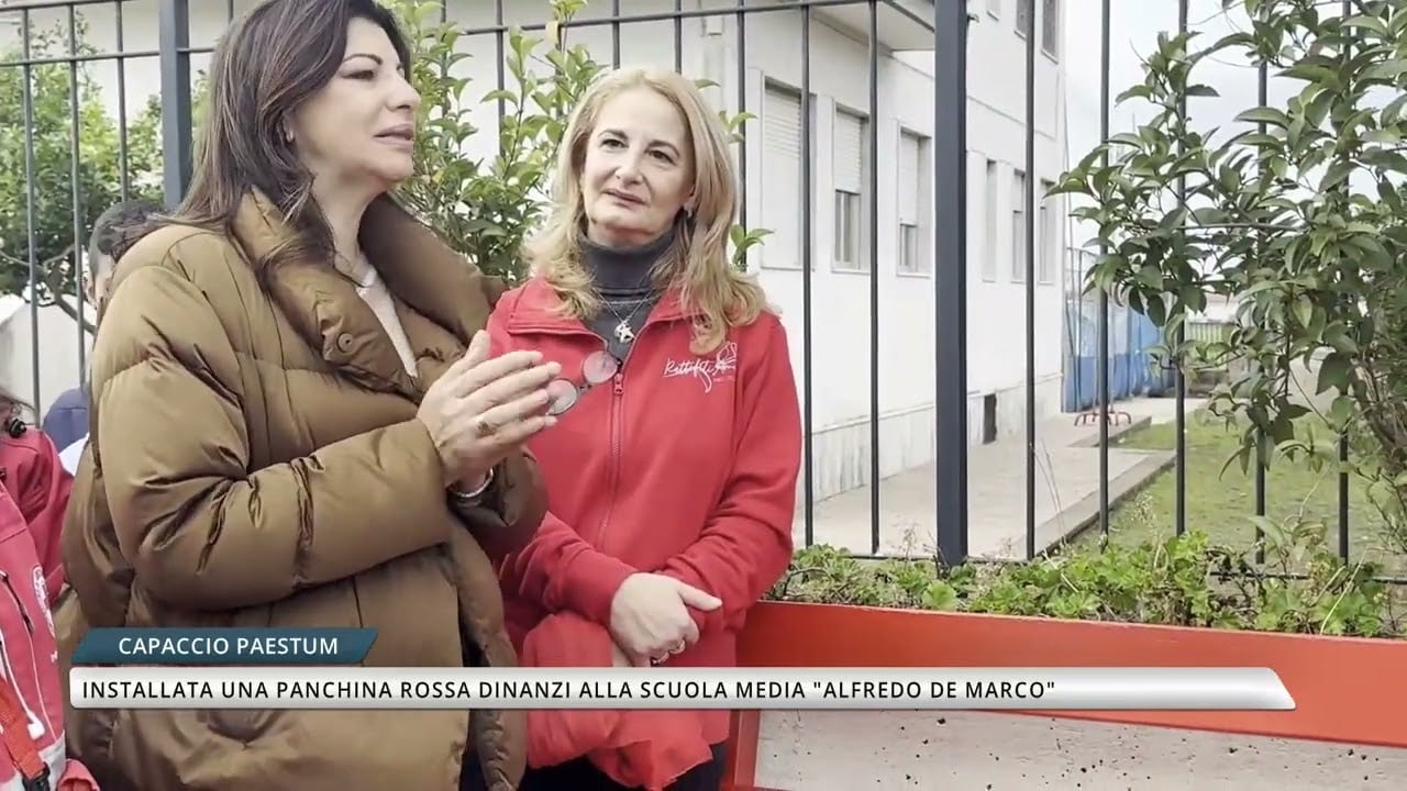 Questa mattina, al termine del dibattito sulla violenza di genere, denominato “Lezioni d’amore” e organizzato per gli studenti della Scuola Media Statale “Alfredo De Marco” di localitร Rettifilo Vannulo a Capaccio Paestum, proprio dinanzi alla sede scolastica, รจ stata installata e inaugurata una panchina rossa simbolo della lotta contro la violenza sulle donne e in ricordo delle troppe donne uccise dalla mano violenta di un uomo.