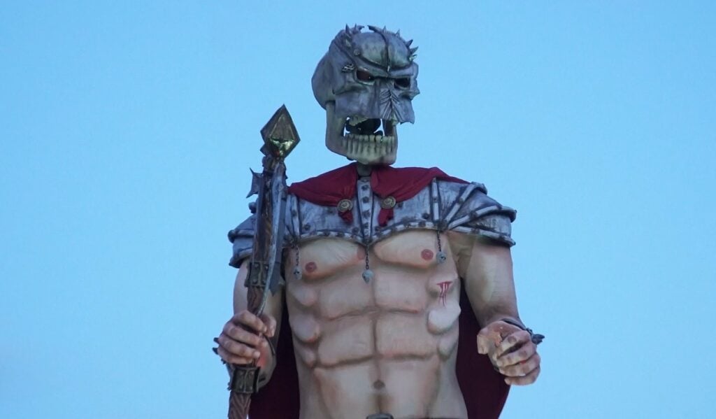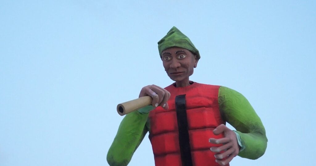 Il carro di carnevale rappresenta una satira ironica e coloratissima della società contemporanea, dove l’apparenza spesso conta più dell’essenza. Al centro troneggia un teschio messicano vestito da Amleto, simbolo universale del dubbio esistenziale. Con il celebre teschio con lo specchio in mano, non si chiede più “essere o non essere”, ma si guarda come a dire che oggi il vero dilemma è apparire sempre, a ogni costo, anche dietro una maschera. Attorno a lui, pecore appariscenti e vanitose incarnano il conformismo moderno: una diva glamour, una rockstar, una ballerina scintillante, una fashion victim sempre in posa. Le pecore, simbolo di chi segue il gregge, indossano costumi esagerati, piume, lustrini e accessori vistosi, mostrando come l’identità venga spesso sostituita da un personaggio da esibire.
