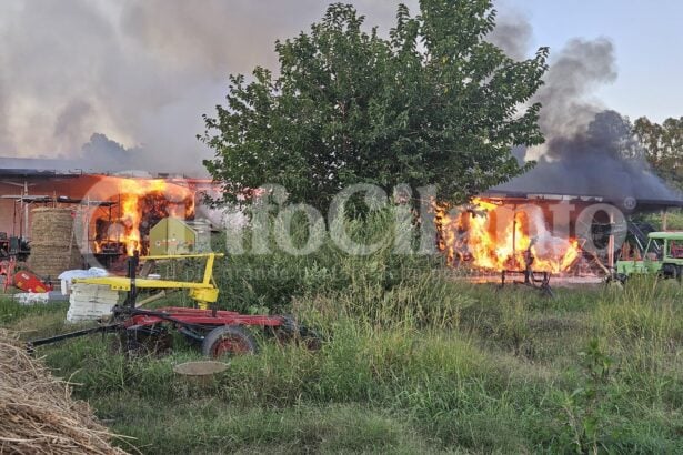 Secondo le prime ricostruzioni, le fiamme sarebbero state innescate da una scintilla provocata durante lavori di saldatura con l’utilizzo di un flessibile. Il fuoco si sarebbe rapidamente propagato ai balloni di fieno presenti nel deposito, coinvolgendo l’intero fienile.