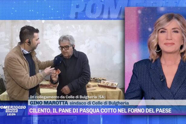 Il forno di comunità, le bellezze del paese e la tradizione del “viccio” pasquale. Boom di ascolti per il servizio su Celle di Bulgheria andato in onda ieri, nel corso della trasmissione televisiva Pomeriggio 5. La conduttrice Myrta Merlino si è collegata in diretta con il sindaco Gino Marotta e alcune donne del paese che hanno illustrato la preparazione del tradizionale “viccio” pasquale. Sul posto anche l’inviato del programma, Vincenzo Rubano, che ha condotto i telespettatori di Canale 5 in un fantastico viaggio tra le bellezze del territorio.