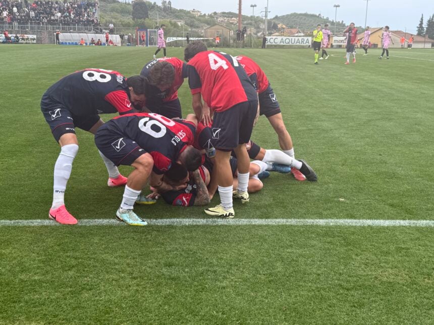 Dopo il gol, i rossoblรน perdono concentrazione e subiscono il gol di Ferrante, che approfitta di una disattenzione della retroguardia della Gelbison.