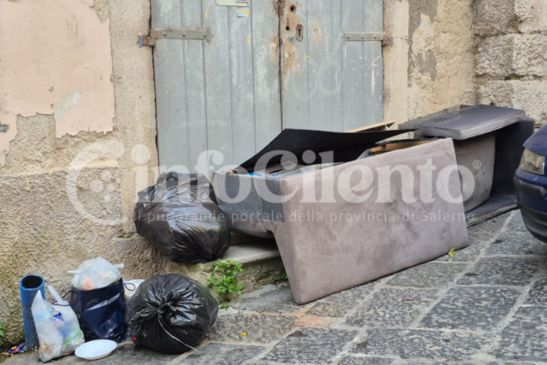 Nuovo abbandono di rifiuti ingombranti del centro storico di Eboli e torna prepotente la protesta dei residenti e dei volontari che sono impegnati ogni giorno in azioni di tutela del borgo antico. Un vecchio divano e una poltrona, grossi sacchi neri di rifiuti non differenziati, buste e sacchetti abbandonati all’angolo di Piazza San Nicola, a pochi metri dallo storico campanile con l’orologio.