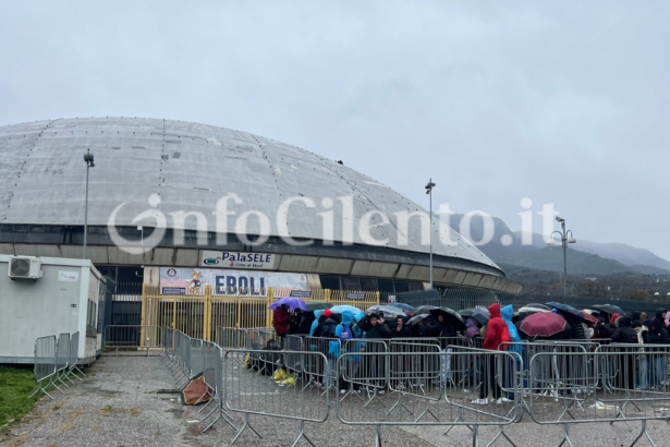 Dalle prime ore dell’alba di questa mattina, sotto una pioggia battente ed esposti alle intemperie, travolti dalle raffiche di vento, senza riparo e senza condizioni di sicurezza, sono almeno una cinquantina le persone che attendono già l’apertura dei cancelli del PalaSele per assistere, alle ore 21.00 circa, al concerto di Lazza.