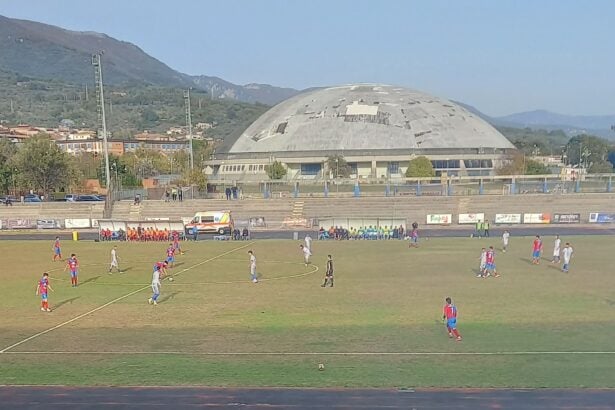 Prima azione al sesto, tiro di Spinola a lato, sessanta secondi e ci prova Cavallo, ma il pallone termina fuori. Al nono Cappiello dalla distanza, Faggiano sorveglia senza problemi. Vantaggio dell’Ebolitana al sedicesimo, con Spinola, che nell’area piccola trafigge Faggiano.