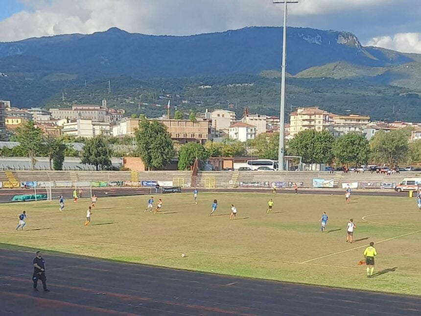 La partita termina, dopo sette minuti di extra time. Vince l’Ebolitana, la squadra viene applaudita dal pubblico di casa.