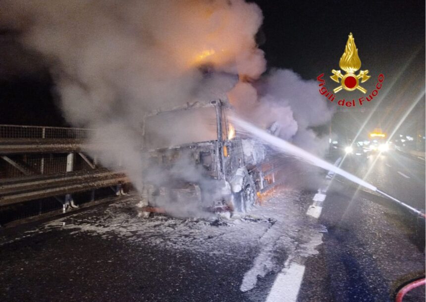 Stando alle ricostruzioni durante la marcia il mezzo ha preso fuoco e il conducente è riuscito a portarlo fino alla corsia di emergenza, illeso. Restano da definire le cause.