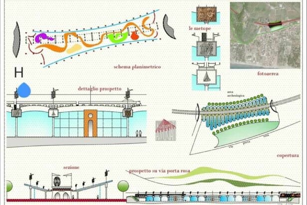 Assunte le condizioni sviluppate nel progetto in essere in base alle quali si dovrebbe necessariamente utilizzare lo spazio dell’ex galleria ferroviaria passante per l’area, Cammarano propone , di contro, l’utilizzo del viadotto ferroviario antistante l’area archeologica. “Il viadotto è costituito da 19 piloni in cemento armato, con campate aventi una luce costante di mt 9.50 e una larghezza esterna di mt 9.00, di altezza netta pari a mt 4.50 circa; la struttura sorregge il doppio binario della linea Salerno- Reggio Calabria”. La chiusura dell’infrastruttura, contribuirebbe altresì a riqualificare l’area, oltre che a favorire una visibilità straordinaria al sito retrostante: Ampie vetrate, potrebbero garantire non solo la creazione di spazi espositivi enormi ed ben illuminati, ospitare la biglietteria, un punto di ristoro, sale riunioni, una biblioteca. “Una struttura, sostanzialmente, a consumo di suolo zero, in quanto – conclude l’architetto Cammarano– viene recuperata alla funzione museale lo spazio di sedime del tracciato ferroviario”.