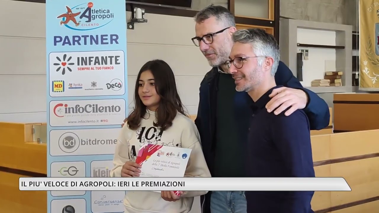 Sono stati premiati ieri, venerdì 19 dicembre, nell’aula consiliare, i ragazzi “più veloci di Agropoli“. Dopo l’evento dello scorso 14 novembre presso lo stadio Guariglia, le classi dell’Istituto Gino Rossi Vairo che avevano realizzato i tempi migliori nella corsa sui 60 metri hanno ricevuto formalmente il premio presso il palazzo di città.