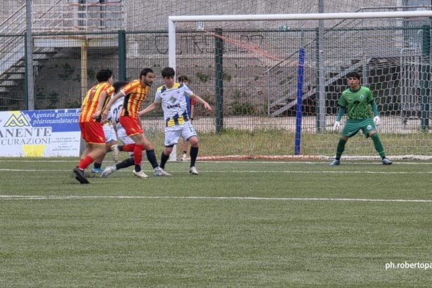 Santa Maria subito in proiezione offensiva, con una serie di calcio d’angoli che non creano però pericoli a Chiocchi. Aumenta la pressione giallorossa che arriva al tiro con Di Giacomo, mira imprecisa per l’attaccante giallorosso. Strozza la conclusione al 16’ l’attaccante del Santa Maria da buona posizione, si salva il Solofra.