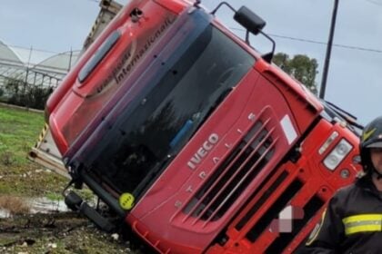 Incidente a Pontecagnano: autocarro finisce fuori strada
