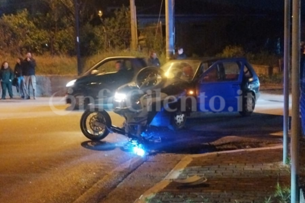 Incidente stradale questa sera, poco prima delle 19, tra via Moio e via Belvedere ad Agropoli. In prossimità di un incrocio si sono scontrate una moto e un’auto, una Fiat Uno; violento l’impatto: a riportare la peggio è stato il ragazzo a bordo del mezzo che è stato scaraventato a terra.