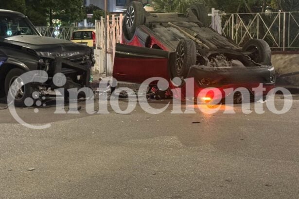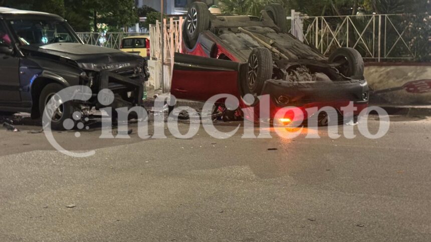 Momenti di paura nella serata di oggi a Marina di Casal Velino, dove un violento incidente stradale si è verificato all’incrocio tra via Gavino e una traversa adiacente. Coinvolti due veicoli: una Jeep Land Rover e una Renault Kadjar, quest’ultima finita capovolta dopo l’impatto.