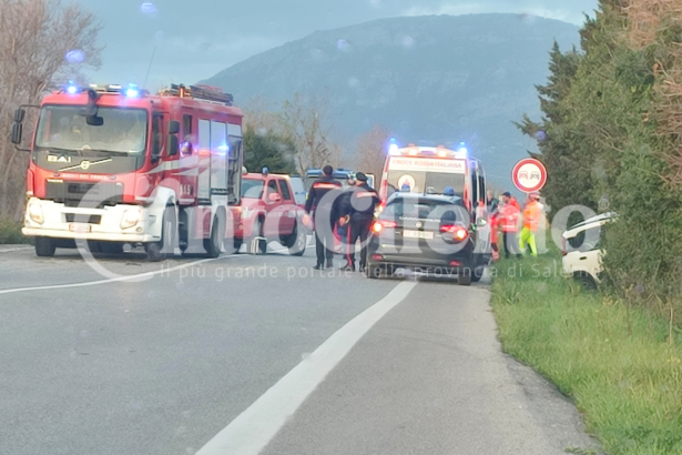 Due vetture, dopo l’impatto, sono finite fuori strada terminando la loro corsa tra la vegetazione.