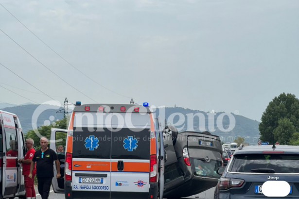 L’impatto violento tra due auto e poi l’un van Opel che si cappotta. È accaduto poco fa lungo la Strada Statale 18 l’arteria a scorrimento che collega il Comune di Eboli con il Cilento, nel territorio di Capaccio Paestum. Panico tra gli automobilisti e immediatamente è stato lanciato l’allarme: Sul posto sono giunti i mezzi di soccorso. Le ambulanze che hanno provveduto a soccorrere i tre malcapitati e i carabinieri per i rilievi del caso.