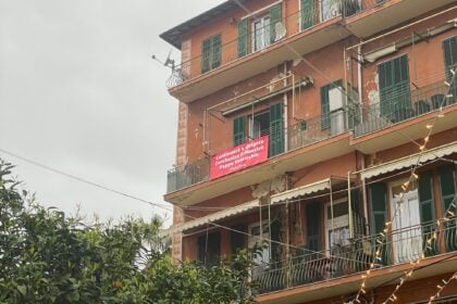 Nel cuore della città dei fiori, a Piazza Bresca, uno dei luoghi simbolo del centro cittadino di Sanremo, è stato affisso uno striscione su un balcone affacciato sulla piazza, proprio nei giorni in cui l’atmosfera del Festival anima strade, locali e palcoscenici.