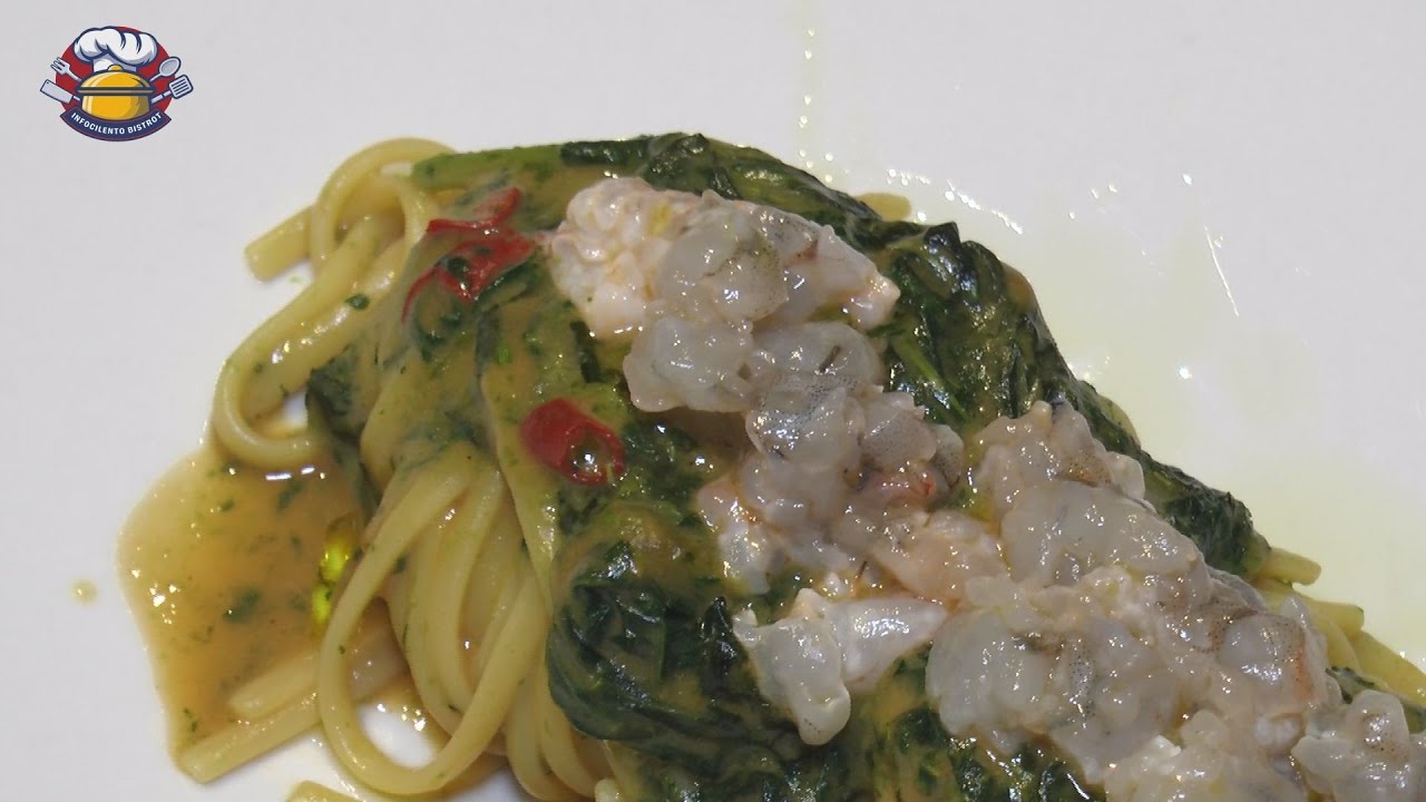 In questa puntata, lo chef ha preparato linguine con cime di rapa e mazzancolle.