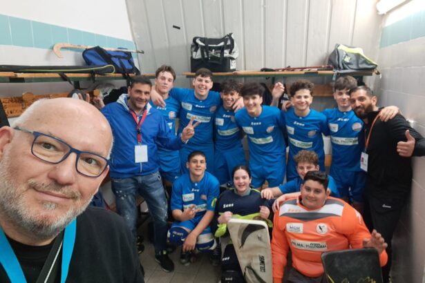 La squadra allenata da Berniero Gallotta vince a punteggio pieno il girone Sud e giocherà per lo scudetto di categoria a Viareggio dal 30 maggio al 2 giugno. Nell’ultima gara della stagione regolare netta vittoria a Giovinazzo per 1-15 grazie ad un’ottima partita giocata su un parquet difficile, mun vero e proprio tempio dell’hockey, contro una squadra dalla tradizione importante. Mister Gallotta ha fatto ruotare tutti i giocatori a disposizione ed entrambi i portieri.