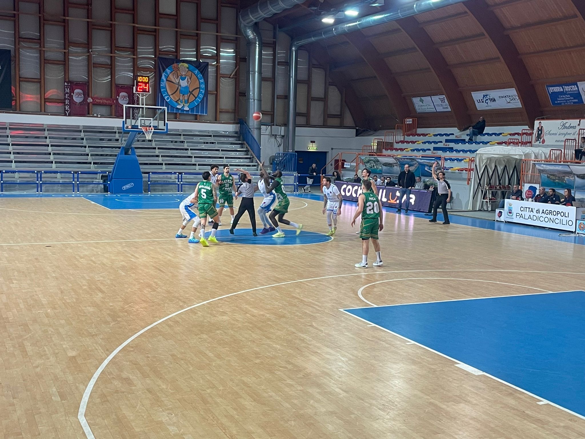 Nel primo quarto parte meglio la Polisportiva Matese pizzando un paio di triple con Puca e i canestri dal campo di Ndiaye; reagisce la Polisportiva Basket Agropoli con Lepre Palma e le triple di Di Mauro e Lybaek, al termine il risultato è di 19-22.