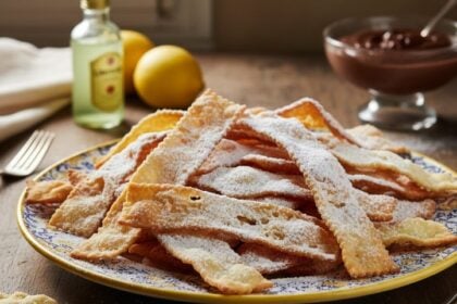 Il Carnevale ha un profumo inconfondibile: quello della sfoglia fritta e dello zucchero a velo che invade le cucine. Le chiacchiere sono le protagoniste assolute di questo periodo, un dolce semplice che affonda le radici nella storia rurale del nostro territorio, dove pochi ingredienti poveri venivano trasformati in una festa di croccantezza. La particolarità della versione locale risiede spesso nell’aggiunta di un tocco di liquore aromatico, come il limoncello della costiera o l’anice, che rende l’impasto ancora più friabile e profumato.