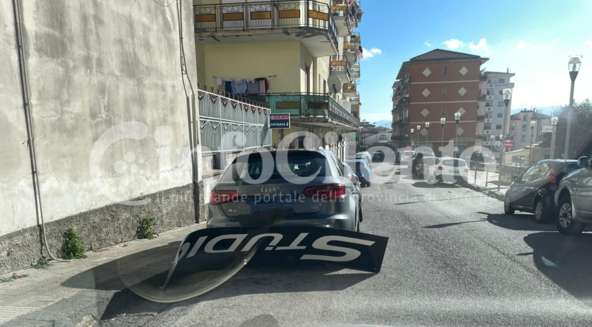 Il vento forte ha sradicato dal muro di una attività professionale la tabella pubblicitaria. È accaduto in via Juri Gagarin ad Eboli.