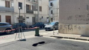 Eboli, cede l’asfalto in via Mario Garuglieri: strada chiusa e disagi per la circolazione in centro