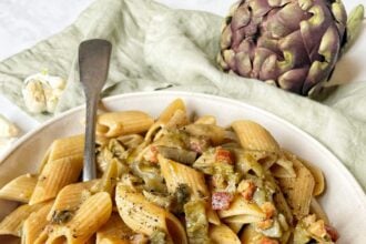 Ecco come preparare una pasta cremosa con i carciofi di Paestum e pancetta in 5 minuti