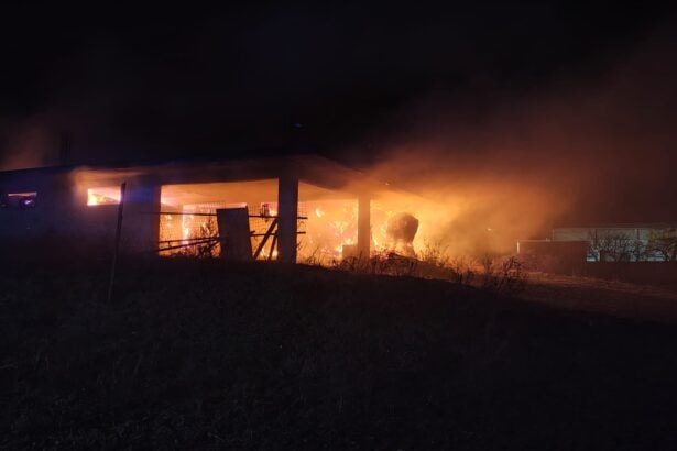 Le fiamme, per cause ancora in corso di accertamento, hanno rapidamente distrutto numerose rotoballe di fieno depositate nella struttura.
