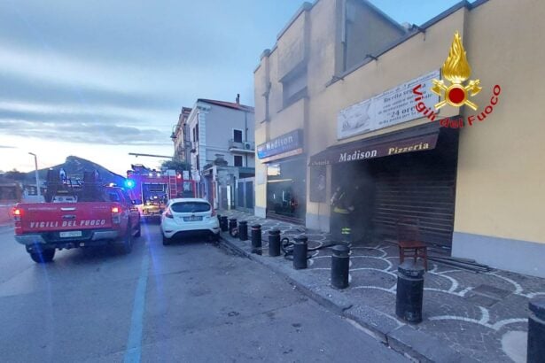 Incendio questa mattina intorno alle 5:30 a Cava de’ Tirreni. Le fiamme sono divampate all’interno dei locali di una pizzeria fortunatamente chiusa dato l’orario.