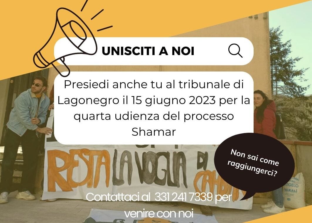 “Vi invitiamo, si legge sulla pagina Facebook di “R.E.S.T.A.” a partecipare alla quarta udienza ricordando che i fatti oggetto del processo in questione – dei quali abbiamo già parlato nei precedenti post di questa pagina – hanno preso il via con l’operazione Shamar nell’aprile del 2021.