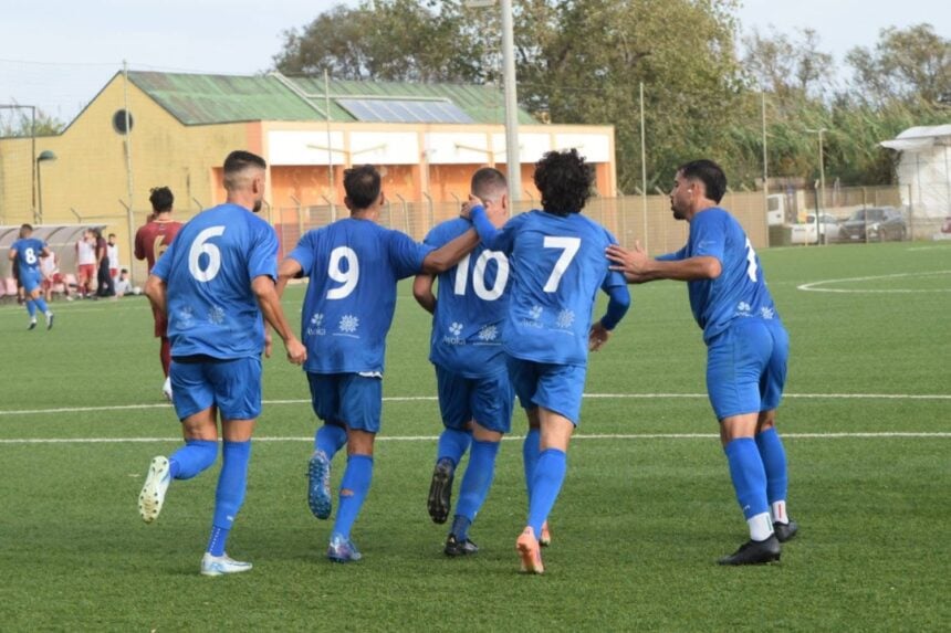 L’Agropoli prova a reagire nel finale della prima frazione con una punizione di Tedesco, respinta da Cirillo.