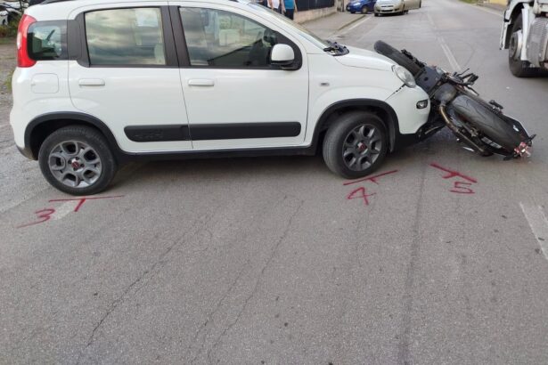 Per cause in corso di accertamento si è verificato un violento scontro tra un’automobile ed una motocicletta. Ad avere la peggio il motociclista che ha riportato diverse ferite.