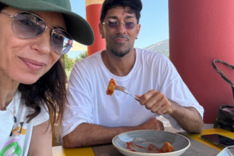 Scatti sui social per l’artista che sta trascorrendo le sue vacanze nel Cilento con il compagno