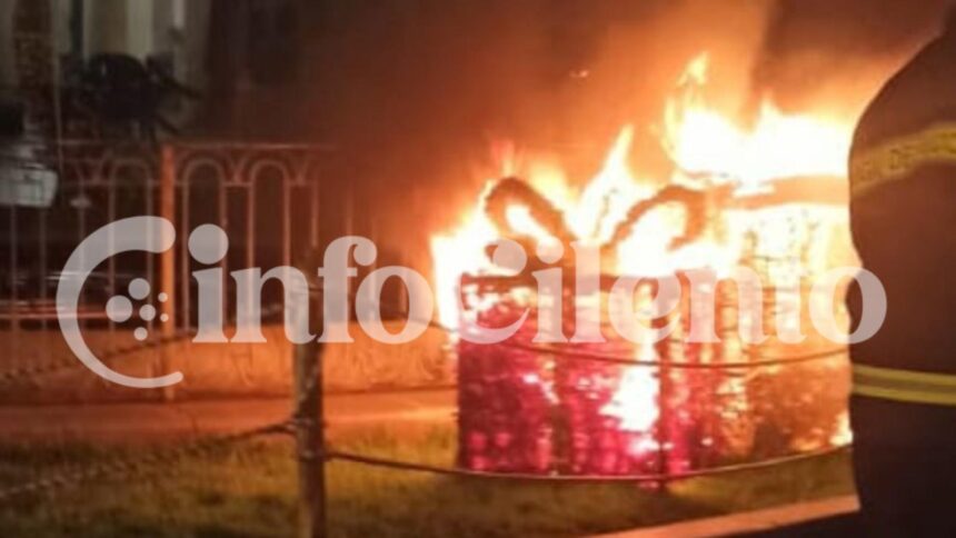 Attimi di apprensione questa sera in Piazza Vittorio Emanuele II, a Vallo della Lucania, dove una decorazione natalizia ha preso improvvisamente fuoco, probabilmente a causa di un corto circuito.