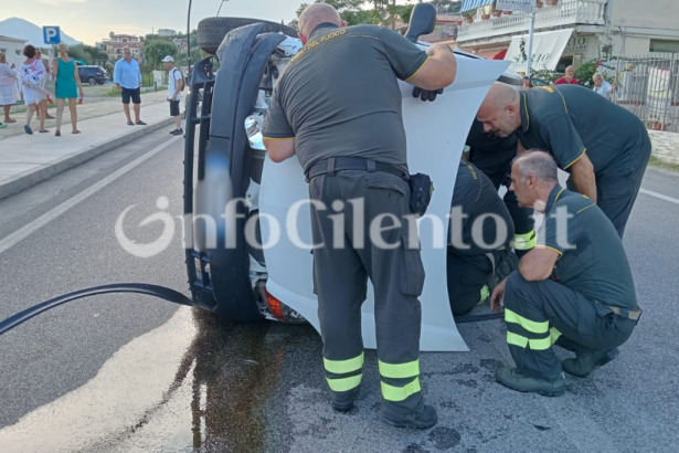 L’autovettura sulla quale si trovava ha colpito altre macchine parcheggiate lungo la strada per poi ribaltarsi e finire rovinosamente la sua corsa sull’asfalto.