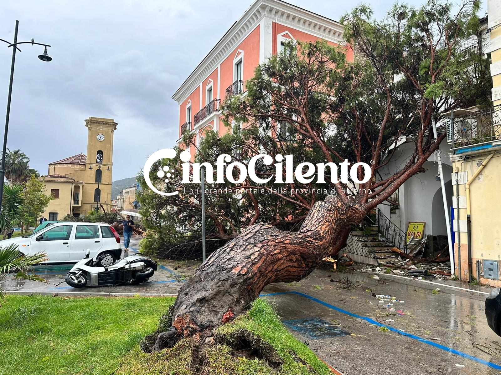 Un violento temporale con forti raffiche di vento si è abbattuto questa mattina sul Golfo di Policastro. Ingenti i danni registrati a Villammare dove alcuni alberi, tra cui un grosso pino, si è schiantato al suolo. Per fortuna in quel momento non transitava nessuno altrimenti si sarebbe rischiata la tragedia. Alcune auto e diversi ciclomotori sono rimasti danneggiati.